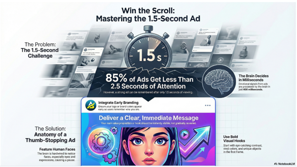 It is an uphill task to get your creatives noticed by the viewers in this age of rapid scrolling. If your creatives fail to capture attention within 1.5 seconds, they never exist. However, with visual appeal, clarity, relevance and good branding, even those few seconds can be a long-lasting impression that will lead to actual outcomes. Keep in mind, it is not only about being seen. It is a matter of being remembered and seen.